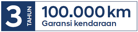 Gratis garansi kendaraan 3 tahun/100.000 km, mana yang tercapai terlebih dahulu.