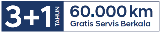 Gratis jasa dan suku cadang servis berkala 4 tahun /60.000 km, mana yang tercapai terlebih dahulu.